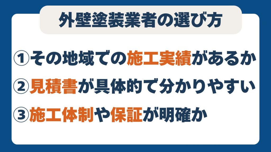 ここでは、初めての方でも判断しやすい、後悔しない外壁塗装業者選びの3つのポイントを紹介します。